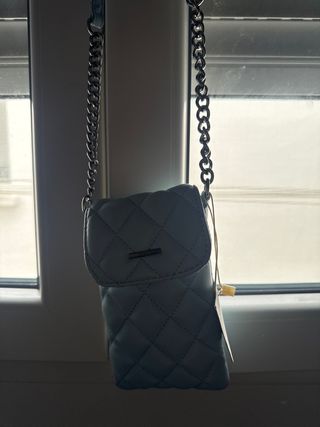 Bolso pequeño de color azul, ideal para llevar el móvil. - Diseño acolchado con rombos. - Cadena metálica para colgar. - Cierre de solapa.