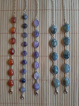 Preciosas pulseras nuevas con minerales naturales. Piedras de Agata cornalina con cierre y cadena chapado en oro , amatista y labradorita. Diseño único y elegante . precio por unidad