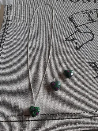 Cadena con colgante nuevo de mineral natural rubí en zoisita. Cadena es de 100% plata 925 . Precio solo por corazón de piedra mineral es 10€
