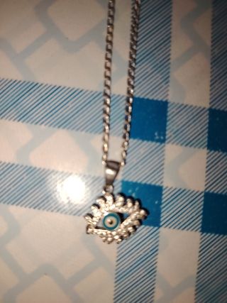 Preciosa gargantilla de plata de ley 925 con un colgante en forma de ojo decorado con circonitas. Es una pieza delicada y elegante. - Material: Plata 925. - Colgante: Ojo con circonitas. - Cierre: Tipo mosquetón.