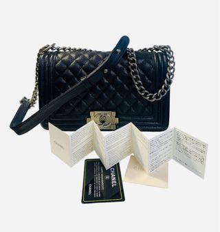 Elegante bolso Chanel modelo Boy. - Elaborado en cuero texturizado. - Diseño acolchado. - Herrajes metálicos plateados. - Correa de cadena y cuero. - Conservada con mucho cuidado, sin rasgaduras ni manchas. - Interior limpio y sin daños. - Ideal para uso diario o para ocasiones especiales No cambios. ¡Una oportunidad única para hacerte con un clásico!