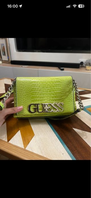 Bolso de mano o bandolera con un llamativo diseño. - Acabado texturizado que imita piel de cocodrilo. - Detalle metálico frontal con el logo de la marca. - Cadena metálica para llevar al hombro o cruzado.