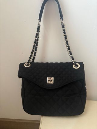 Bolso negro acolchado con cadena