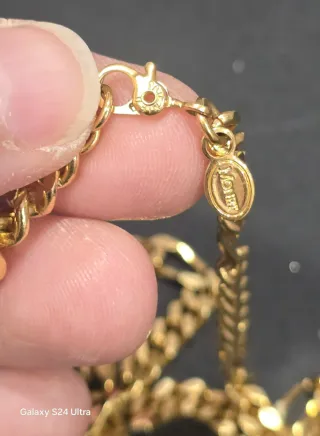 Elegante cadena dorada con un diseño trenzado que imita un cordón. - Acabado brillante. - Estilo cordón. - Diseño trenzado. - Comprada en un anticuario de Marsella - Si te gusta cosa del perfil, puedo hacer lotes y descuentos. (Joyas, lote, oro, plata, vintage, cadena, colgante, anillo, pulsera, anriguedades, antiguo, bisuteria, barato)