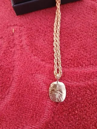 Elegante cadena dorada con un colgante a juego. Ideal para complementar cualquier atuendo. - Diseño de cadena tipo soga. - Colgante con relieve.