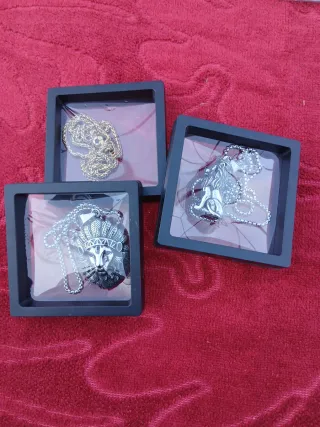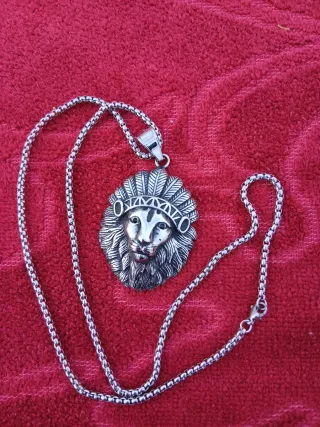 Conjunto de tres colgantes con cadena gruesa.precio por unidad - Diseño de cabeza de león con tocado. - Diseño de cabeza de león. - Diseño de balón de fútbol.