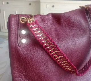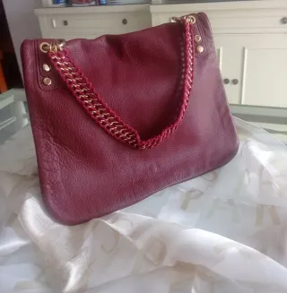 Elegante bolso de piel en color burdeos, con un detalle de cadena dorada. - Material: Piel. - Color: Burdeos. - Adorno: Cadena dorada.
