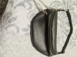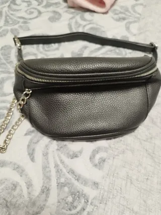 Riñonera con un diseño moderno y práctico. - Material con textura. - Cierre de cremallera. - Detalle de cadena plateada.