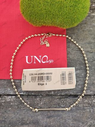 Cadena de la marca española Uno de 50 modelo Elige 6 de bolitas de metal bañado en oro en la que se pueden poner diferentes charms en la barrita que se abre a rosca. Envío a cargo del comprador. No se admiten devoluciones.