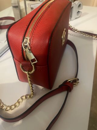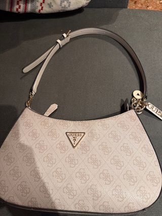 Bolso de la marca Guess en perfecto estado. - Diseño con monograma. - Detalle de logo metálico. - Cadena dorada. - Correa ajustable.