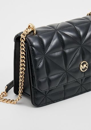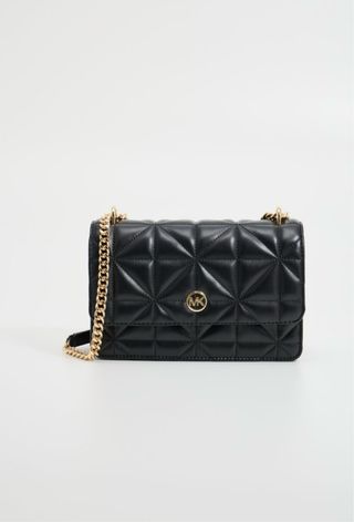 Elegante bolso de mano Michael Kors con un diseño acolchado y detalles en cadena dorada. Un accesorio sofisticado para cualquier ocasión. - Acabado acolchado con patrón geométrico. - Cadena metálica dorada para llevar al hombro o cruzado. - Cierre de solapa con el logo de la marca.