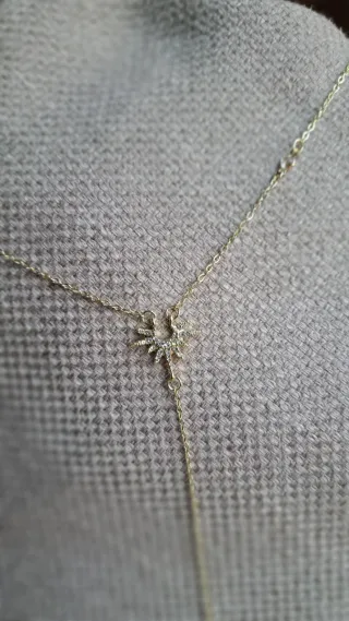 Elegante collar con un diseño de estrella brillante y una cadena larga que cae. - Acabado dorado. - Detalle de estrella con circonitas. - Cadena ajustable.