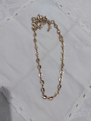 Colgante metálico de color dorado con un grabado de la gorgona Medusa + cadena de eslabones del mismo material y color. Se ha usado en una ocasión, prácticamente nuevo. Desconozco la marca.