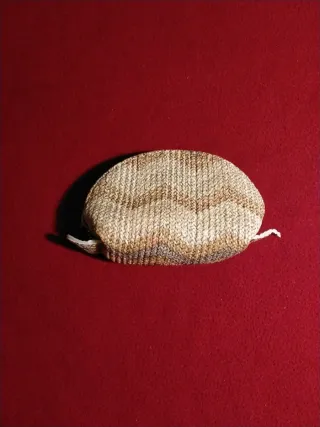Pequeña bolsita con cierre de cremallera, tejido exterior plástico e interior de loneta marrón. Ideal como monedero o bolsa para cosméticos. - Medidas: 13x9x5 cm.