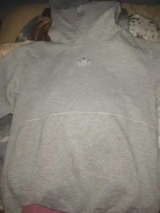 Sudadera de Adidas en color gris. Presenta un diseño moderno con el logo de la marca bordado en la parte frontal. - Logo bordado en el pecho. - Cuello con botones. - Tejido suave y cómodo.