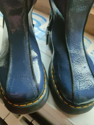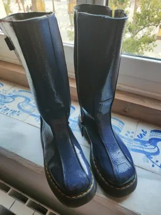 Botas altas Dr. Martens modelo Buzz HI. - Acabado brillante de charol. - Cremallera lateral para facilitar el calce. - Suela con distintivo pespunte amarillo.