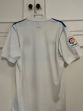 Camiseta de fútbol del Real Madrid de la temporada 2017/18. - Diseño con detalles en azul. - Escudo del club bordado. - Logo de Adidas.