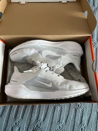 Zapatillas deportivas Nike Pegasus 41 en color blanco. - Diseño moderno y ligero. - Malla transpirable en la parte superior. - Suela con amortiguación. - Cierre con cordones.