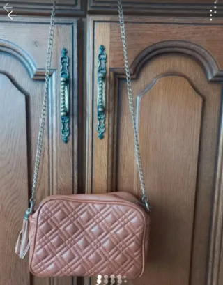 Bolso de mano para mujer con un diseño acolchado y moderno. - Acabado en piel sintética. - Detalle de flecos. - Cadena metálica para llevar al hombro.