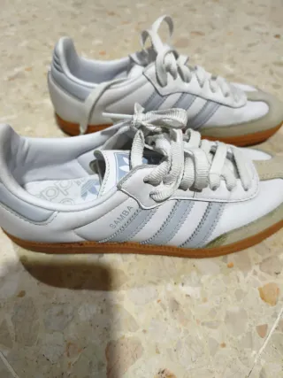 Zapatillas Adidas Samba en blanco y gris. Un clásico atemporal para el día a día. - Diseño icónico de Adidas. - Detalles en gris. - Logo de Adidas en la plantilla.
