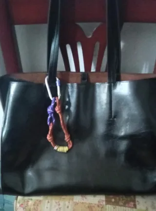 Bolso grande de Parfois en color negro con detalles multicolor. - Cierre principal. - Asa larga. - Colgante decorativo con cuerda y anillas.