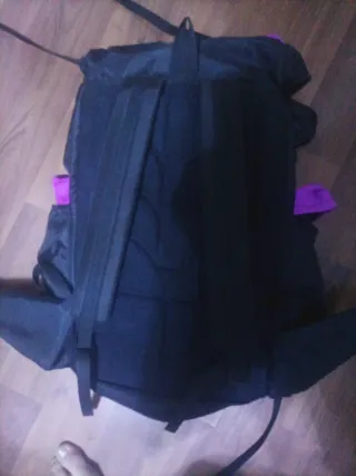 Mochila de montaña de la marca U-SPORT, con un diseño llamativo en color morado y negro. - Compartimento principal espacioso. - Bolsillos laterales. - Cintas de ajuste. - Detalle de color verde lima.