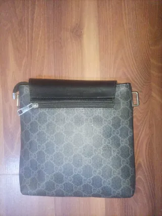 Bandolera de la marca Gucci con un diseño distintivo. 👌Precio Negociable - Patrón GG característico. - Tira central con franjas rojas y marrones. - Cierre de solapa. - Logo de Gucci grabado en la solapa.