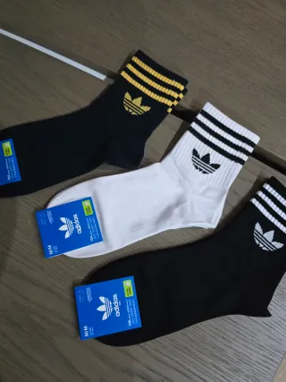 Nuevos con etiqueta, tres pares de calcetines Adidas, talla43 45