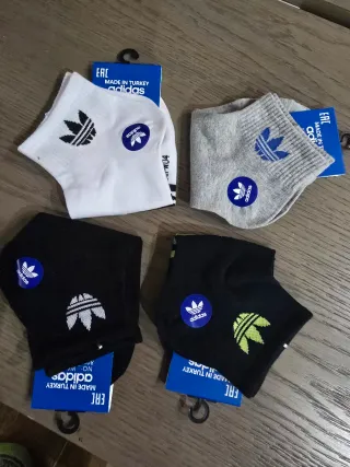 Pack de calcetines Adidas de diferentes colores. - tallas 37-39 - Diseño tobillero. - Logo de Adidas en la caña. - Tres rayas características de la marca.