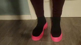 Vendo zapatillas deportivas de plataforma tipo calcetín. Son negras y están usadas, con algunas señales de desgaste en la suela. - Diseño tipo calcetín. - Suela de plataforma.