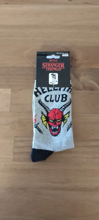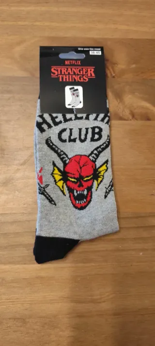 Calcetines con diseño del Hellfire Club de Stranger Things. - Estampado del logo del club. - Dibujo de un demonio con cuernos. - Diseño inspirado en la serie de Netflix.