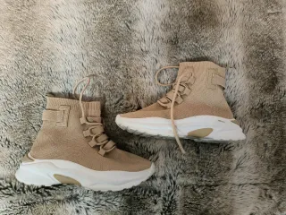Zapatillas deportivas tipo calcetín en color beige y blanco. Diseño moderno y cómodo. - Material textil transpirable. - Suela de goma. - Cierre con cordones.