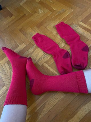 Red customized leg warmers / long socks 🏷️ Talla: 36-38 🔴⚪ Colores: Rojo y blanco ✅ Estado: Bueno, usados en una sola ocasión. 🔎 Detalles: - Están customizados a mano: se cortó la parte de los dedos y del talón para convertirlos en calentadores. - Ideales para usar como segunda capa interior contra el frío o como calentadores en danza u otras actividades deportivas. - En mi caso, los usé para completar un disfraz de deportista de los años ochenta. Tengo unas muñequeras rojas a juego publicadas que pueden completar el look. #manualidades #manualmente #coser #diy #doityourself #costumizar #disfraces #accesorio