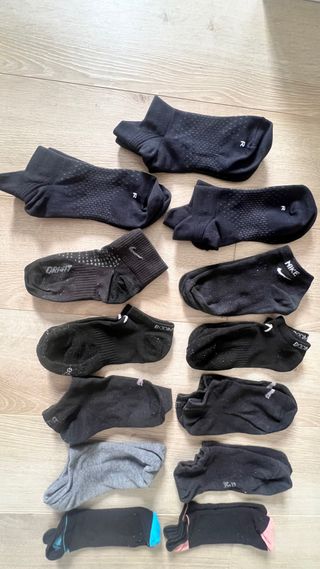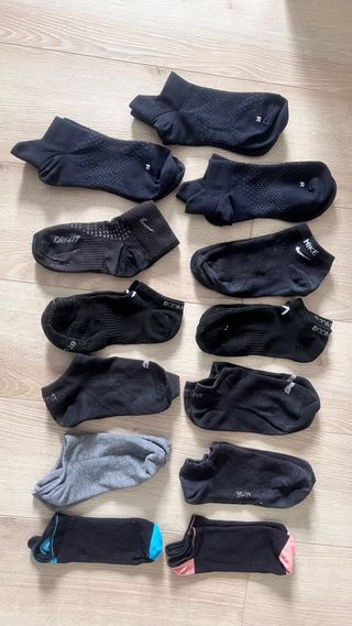 Lote de trece pares de calcetines tobilleros. LOS 3 PRIMEROS PARES ESTAN NUEVOS Talla 35-38 De diferentes marcas Nike, Puma, Boomerang y otras marcas no conocidas - algunos con detalle de logo en la zona del tobillo. - Incluye un par de calcetines grises.