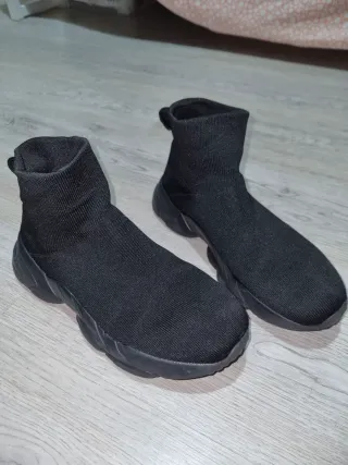 Zapatillas tipo botín de tejido elástico. - Diseño moderno y cómodo. - Suela gruesa y resistente. - Caña alta tipo calcetín. -Poco uso, se puede ver en las fotos