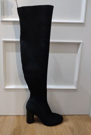 Botin tejido tipo calcetin, color negro, numero 39, altura tacon 8 cm, altura de caña desde tacon 20 cm. Impecables