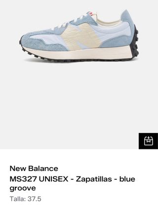 Deportivas de estilo retro, modelo unisex : MS327, en tonos azul claro, beige y negro. Número 37,5. Estado-Muy bueno; 2 puestas.Exterior limpio/como nuevo.En la zona interior de ambos talones tienen bolitas de los calcetines.En su caja y con factura.Compradas en Zalando por 120€. El precio es fijo; NO rebajo ni respondo a ofertas: evitar contactarme para ello porque no respondo y, por favor, contacta SOLO si estás realmente interesad@ porque sino bloqueo directamente. NO doy medidas ni acepto cambios ni devoluciones. Envíos a través de Wallapop y preferiblemente por Inpost, GLS o Seur.