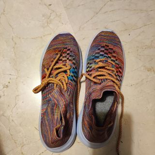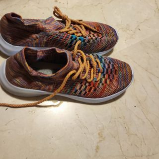 Vendo estos dos pares de zapatillas por falta de uso. Las de colorines están sin estrenar, parecen muy cómodos, son tipo "calcetín". Los azul marino me los he puesto una sola vez. Son bastante cómodos, los tengo en varios colores. Son un 40'5 Cada par 12€, los dos pares 20€