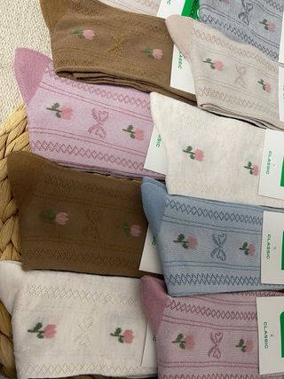 Pack de seis calcetines de algodón con un diseño floral y de rombos. 6 calcetines Talla 35-40 95% cotone 3% polyester 2% spandex