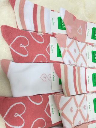 Pack de 12 pares de calcetines con un bonito diseño de corazones. Son cómodos y perfectos para el día a día. 12 calcetines algodón Talla 35-40 Algodón 80% Poliéster 15% Elástico 5%