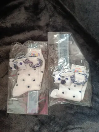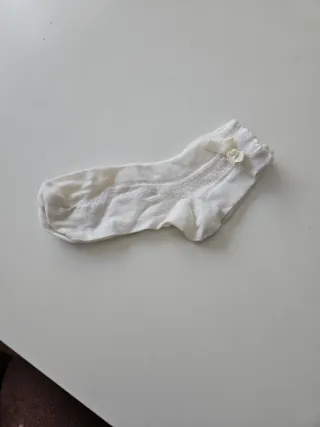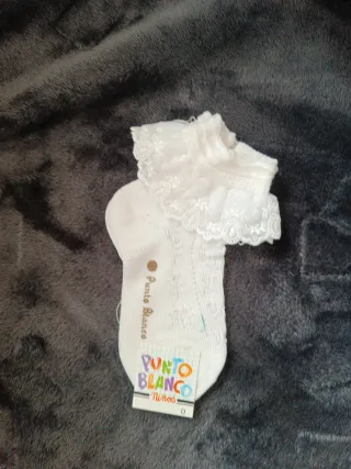 Calcetines blancos con detalle de encaje en el borde. - Diseño con puntilla. - Ideales para ocasiones especiales. - Varias tallas: talla 0 y 2.