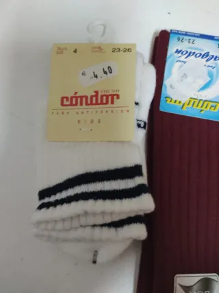 Conjunto de calcetines Condor con diseño de rayas y un par en blanco. Talla 00 - Calcetines de rayas multicolor. - Calcetines blancos de canalé.