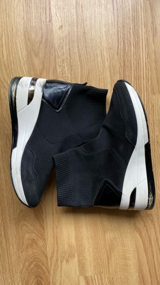 Zapatillas tipo botín de calcetín para mujer. Talla 38 - Diseño moderno y cómodo. - Detalle en la suela con acabado dorado.