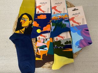 Pack de seis calcetines con diseños artísticos. - Talla única: 38-45. - Diseños inspirados en arte. - Tejido cómodo y transpirable. -80% cotone 15% poliestere 5% nylon