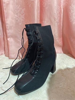 Botas calcetín negras, con cordones y muy cómodas. Son talla 38 y tienen una sola puesta.