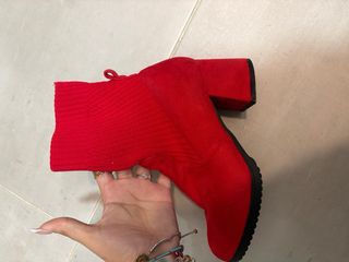 Botas rojas de estilo calcetín, perfectas para mantener los pies calientes. - Diseño de caña alta. - Tacón cuadrado y cómodo. - Material exterior tipo ante.