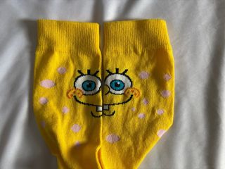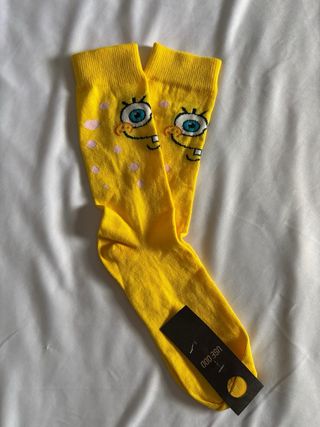 Calcetines con divertido diseño de Bob Esponja. - Talla 39-43. - Amarillos con cara de Bob Esponja ¡Descuento por la compra de varios pares!