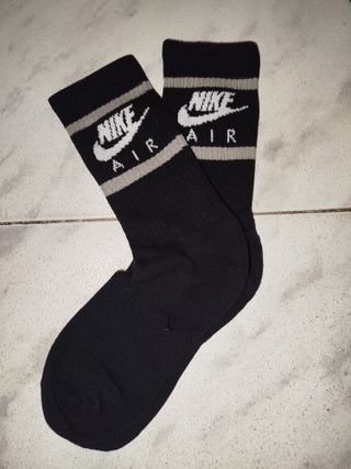 Par de calcetines Nike Air. - Diseño clásico en negro con detalles grises. - Logo de Nike Air visible en la parte superior.