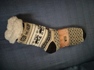 Calcetines térmicos los largos van forrados con borreguito. Tienen pompitas de silicona en la planta por lo que son antideslizantes. - Talla estándar 35/37. - Estampado de renos y copos de nieve. - Material suave y cálido. Los dos por 10€
