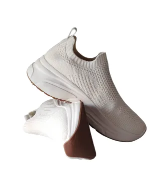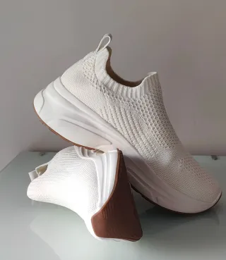 - Zapatillas deportiva de calcetín en punto menguado - Color: Crema - Ribete de canalé en la abertura - Trabillas trasera - Forro de punto - Suelas gruesas con diseño - N° Artículo: 1208970002 - Usadas una sola vez - Compradas en Junio de 2024 - Precio original: 39'99€ - Material: Malla - Composición Forro: 100% poliester Parte superior: 80% poliester, 10% elastano y 10% poliamida Suela: 100% goma termoplástica Detalles: 100% poliuretano
